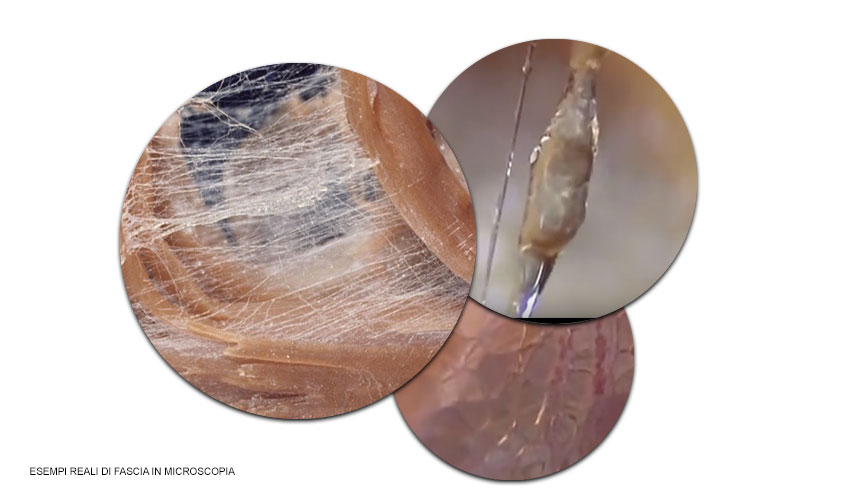 La fascia è una rete di tessuto connettivo, che contiene oltre alla matrice di base extrafibrillare (i cui fibroblasti sintetizzano le fibre), fibre proteiche di collagene (più denso) ed elastina. Queste due componenti portano la rete ad essere elastica in una direzione, ma resistente nell’altra, perché dopo essere stata tirata torna alla forma originale. Si può suddividere in fascia superficiale, circa tre cm sotto la pelle, che inguaina tutto il corpo come una muta da sub, e fascia profonda, intrecciata con muscoli, vasi sanguigni e linfatici, tendini e legamenti.